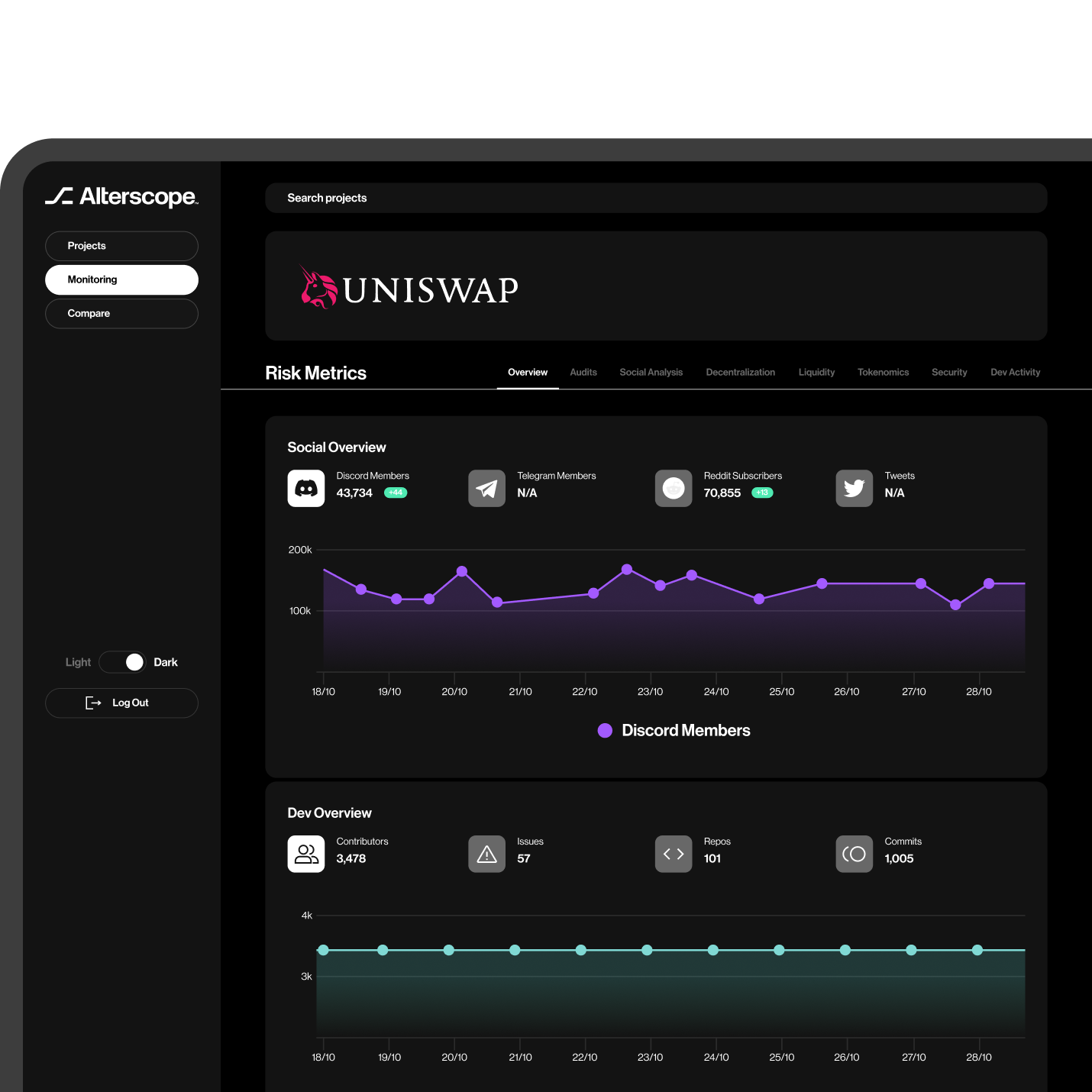 Alterscope creates transparency around decentralized protocols, enabling diversification at a technical-fundamental level and amplifying internal risk control processes.